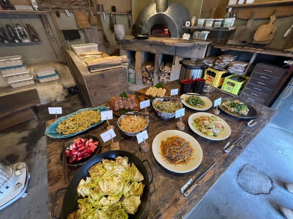 Michikusa 提供使用自家农园种植的无农药蔬菜制作的约10种小菜自助餐,以及石窑料理。