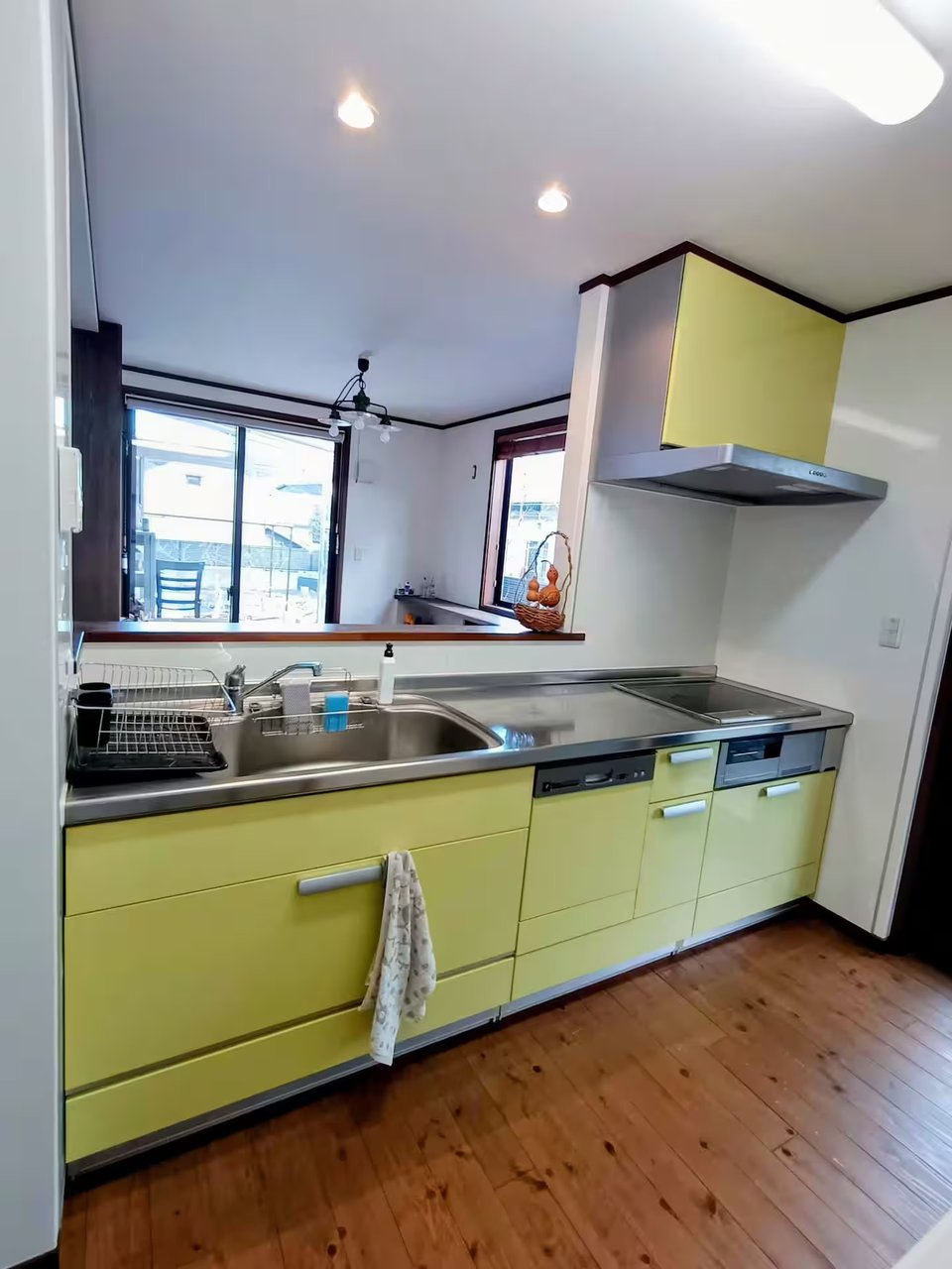 “yadoru/い・と・こ・と”是一栋最多可容纳 10 人的整栋出租民宿。以挑高开放的客厅为中心,提供宽敞舒适的空间,让家人和朋友享受惬意时光。