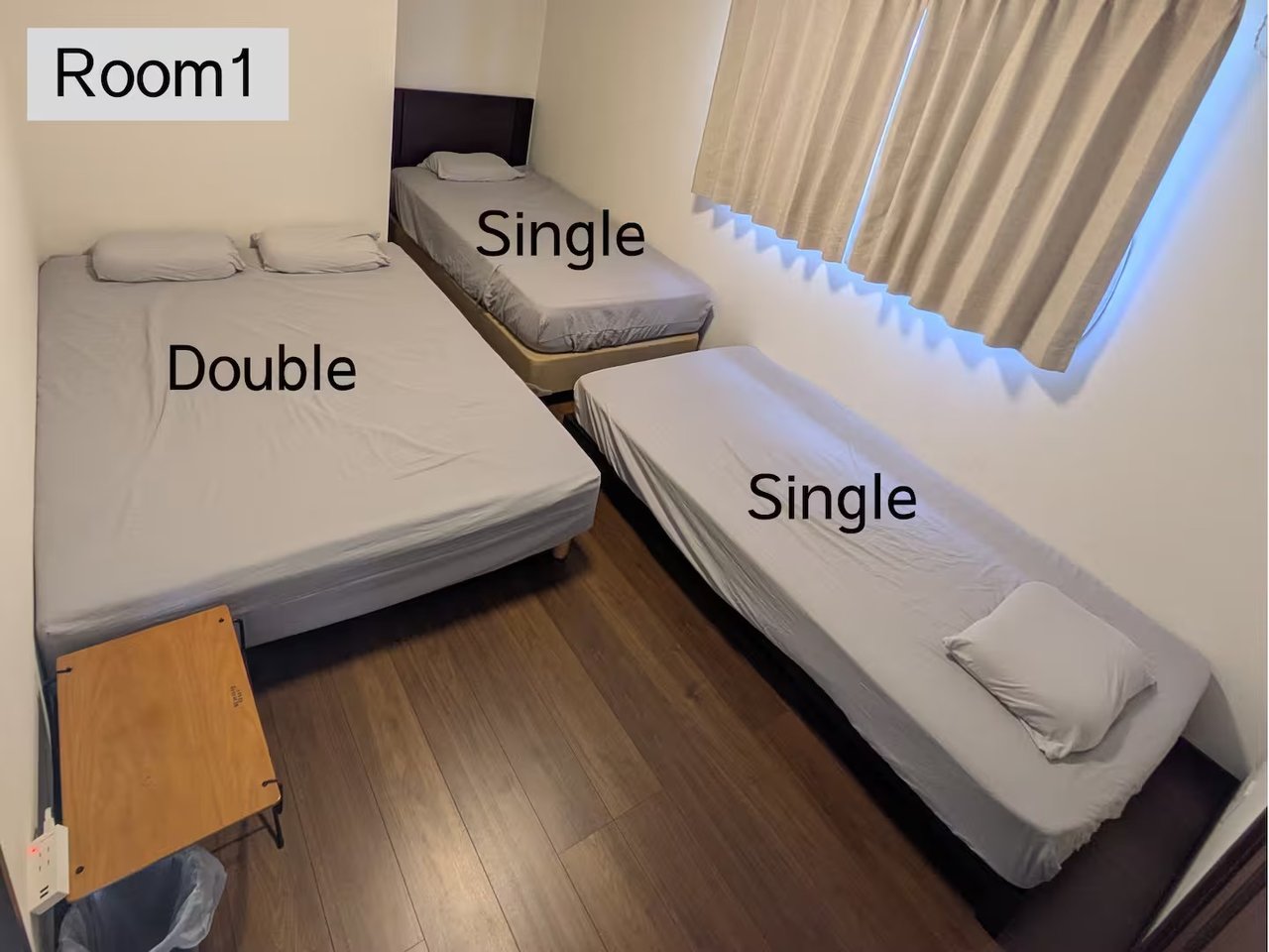 ・三间卧室,配备 7 张单人床、1 张小双人床、1–2 张双人床,适合不同规模的团队入住。