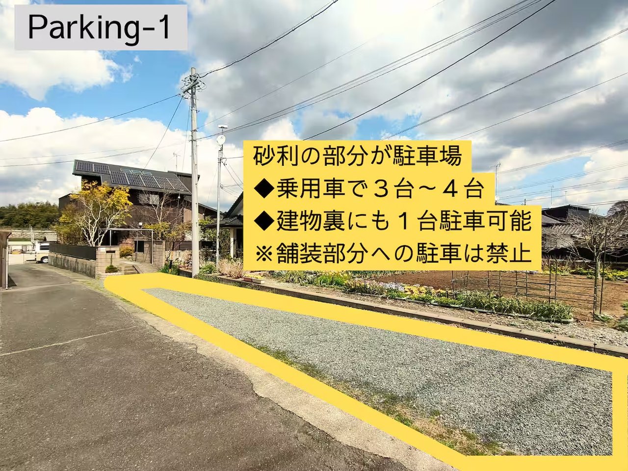 建物前の砂利部分が駐車場です。ご近所のご迷惑になりますので舗装部分は駐車禁止です。